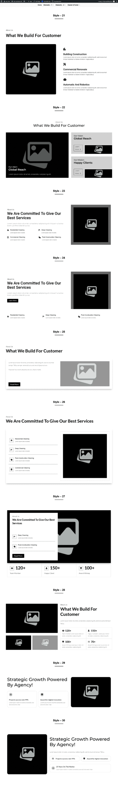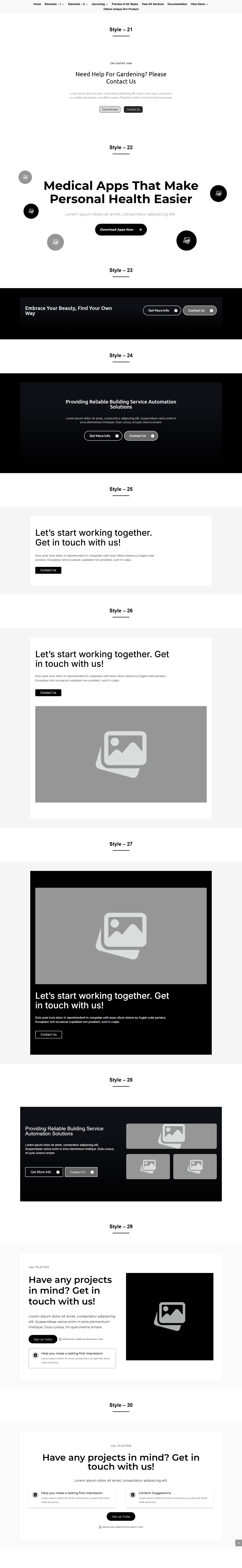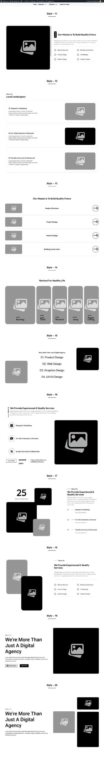 ProSection[Modern] Kit 2 Preview ProSection Kit 1 Preview WireKit Preview About US Style 1 to 70 Contact US Style 1 to 50 FAQ Style 1 to 30 Footer Style 1 to 80 Project Carousel Style 1 to 30 Blog Carousel Style 1 to 40 CTA Style 1 to 70 Team Style 1 to 30 Service Style 1 to 50 Feature Style 1 to 90 Step Style 1 to 30 Project Style 1 to 30 Service Carousel Style 1 to 30 Team Carousel Style 1 to 30 Newsletters Style 1 to 20 Testimonial Style 1 to 40 Hero Style 1 to 50 Pricing Style 1 to 80 Counter Style 1 to 50 Logo Style 1 to 20 Testimonial Carousel Style 1 to 30 Blog Style 1 to 60 About Us Style 1 to 30 Testimonial Style 1 to 30 Pricing Style 1 to 30 Blog Style 1 to 20 Services Style 1 to 30 Hero Style 1 to 30 CTA Style 1 to 30 Project Style 1 to 20 Team Style 1 to 30 Contact Us Style 1 to 30 FAQ Style 1 to 30 View V1.2 Styles About Us Style 1 to 30 Testimonial Style 1 to 30 Blog Style 1 to 30 CTA Style 1 to 30 FAQ Style 1 to 30 FAQ Style 1 to 30 Service Carousel Style 1 to 30 Services Style 1 to 30 Hero Style 1 to 30 Pricing Style 1 to 30 Footer Style 1 to 30 Portfolio Style 1 to 30 Team Carousel Style 1 to 30 Team Style 1 to 30 Feature Style 1 to 30 Counter Style 1 to 30 Contact Form /Info Style 1 to 30 Step Style 1 to 30 Testimonial Carousel Style 1 to 30 Portfolio Carousel Style 1 to 30 Blog Carousel Style 1 to 30