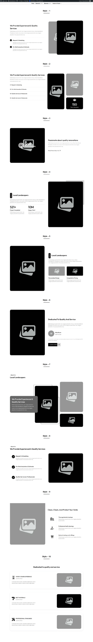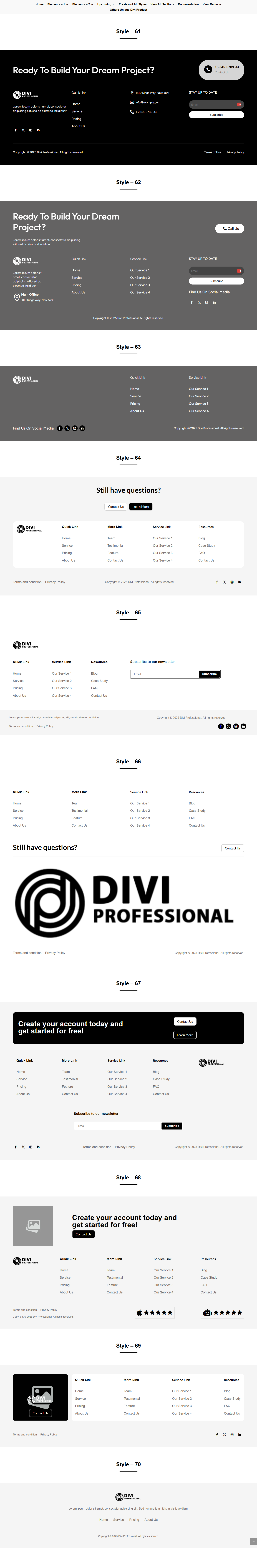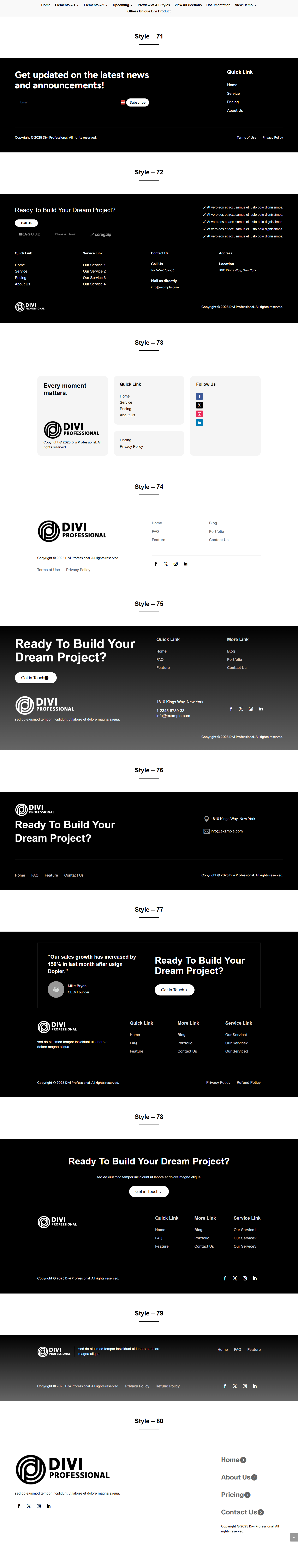 ProSection[Modern] Kit 2 Preview ProSection Kit 1 Preview WireKit Preview About US Style 1 to 70 Contact US Style 1 to 50 FAQ Style 1 to 30 Footer Style 1 to 80 Project Carousel Style 1 to 30 Blog Carousel Style 1 to 40 CTA Style 1 to 70 Team Style 1 to 30 Service Style 1 to 50 Feature Style 1 to 90 Step Style 1 to 30 Project Style 1 to 30 Service Carousel Style 1 to 30 Team Carousel Style 1 to 30 Newsletters Style 1 to 20 Testimonial Style 1 to 40 Hero Style 1 to 50 Pricing Style 1 to 80 Counter Style 1 to 50 Logo Style 1 to 20 Testimonial Carousel Style 1 to 30 Blog Style 1 to 60 About Us Style 1 to 30 Testimonial Style 1 to 30 Pricing Style 1 to 30 Blog Style 1 to 20 Services Style 1 to 30 Hero Style 1 to 30 CTA Style 1 to 30 Project Style 1 to 20 Team Style 1 to 30 Contact Us Style 1 to 30 FAQ Style 1 to 30 View V1.2 Styles About Us Style 1 to 30 Testimonial Style 1 to 30 Blog Style 1 to 30 CTA Style 1 to 30 FAQ Style 1 to 30 FAQ Style 1 to 30 Service Carousel Style 1 to 30 Services Style 1 to 30 Hero Style 1 to 30 Pricing Style 1 to 30 Footer Style 1 to 30 Portfolio Style 1 to 30 Team Carousel Style 1 to 30 Team Style 1 to 30 Feature Style 1 to 30 Counter Style 1 to 30 Contact Form /Info Style 1 to 30 Step Style 1 to 30 Testimonial Carousel Style 1 to 30 Portfolio Carousel Style 1 to 30 Blog Carousel Style 1 to 30